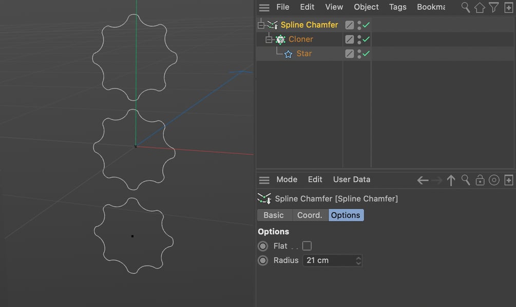 This Cinema 4D Plugin allows you to create non-destructive rounded edges on your splines. It works similar like the Bevel Deformer on Polygons but as a Generator and covers the same functionality of the Cinema 4D Chamfer Tool.
